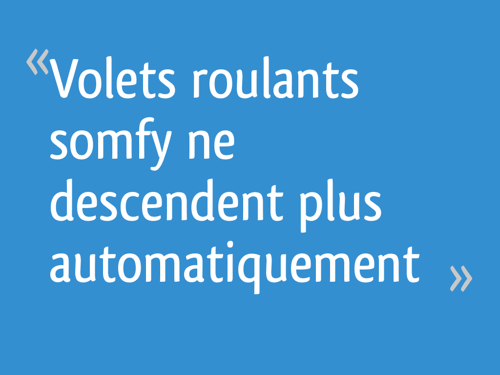 Volets Roulants Somfy Ne Descendent Plus Automatiquement