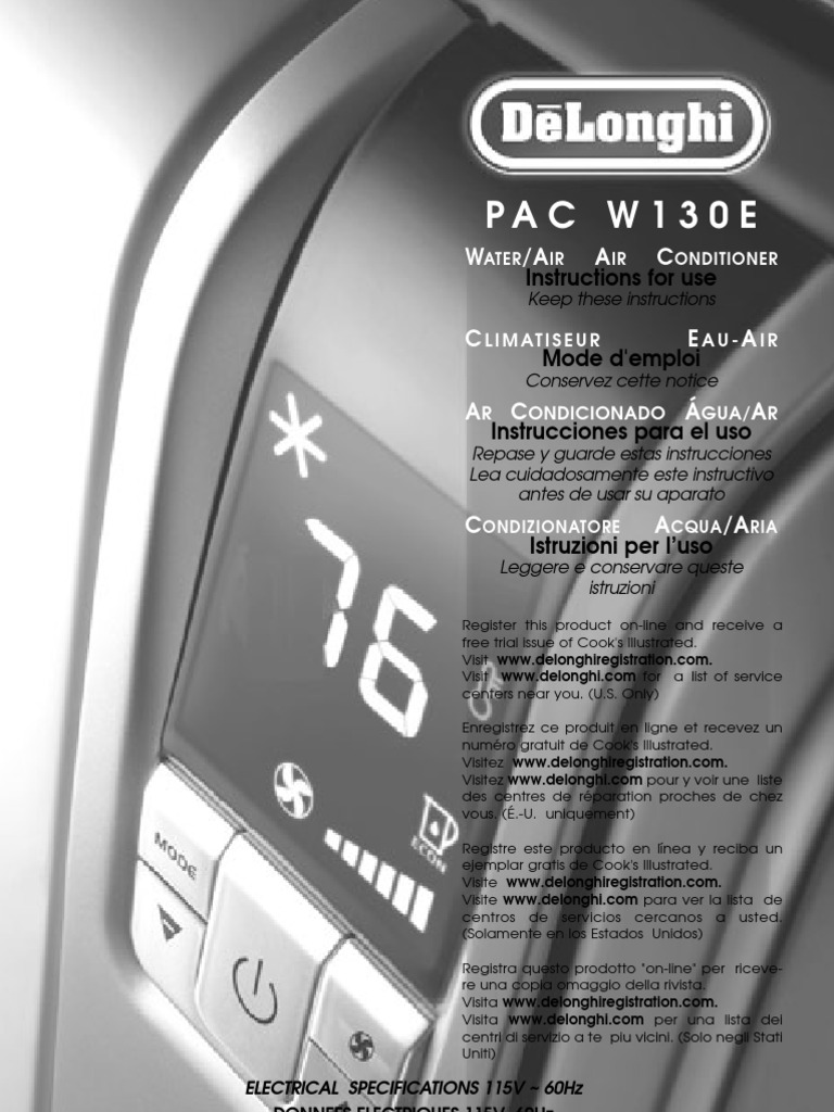 Delonghi Pac260 Air Conditioner User Manual Manualzzcom