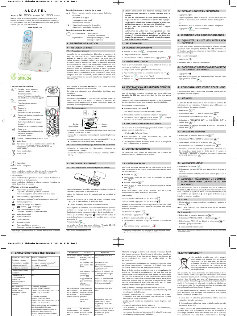 Alcatel Versatis Xl350 Mini Guide Fr Recyclage Téléphone