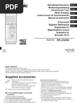 Panasonic Rrus300e User Manual Manualzzcom