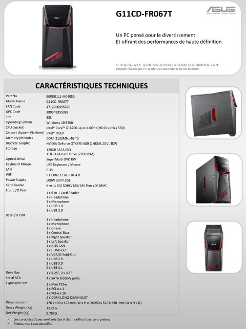 Asus Pc Gamer Asus G11cd Fr067t Mode Demploi Et Notice Pdf