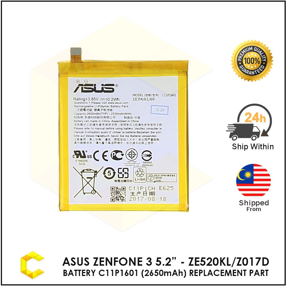 Cellcare Asus Zenfone 3 52 Inch Ze520kl Z017d Battery C11p1601 2650 Mah