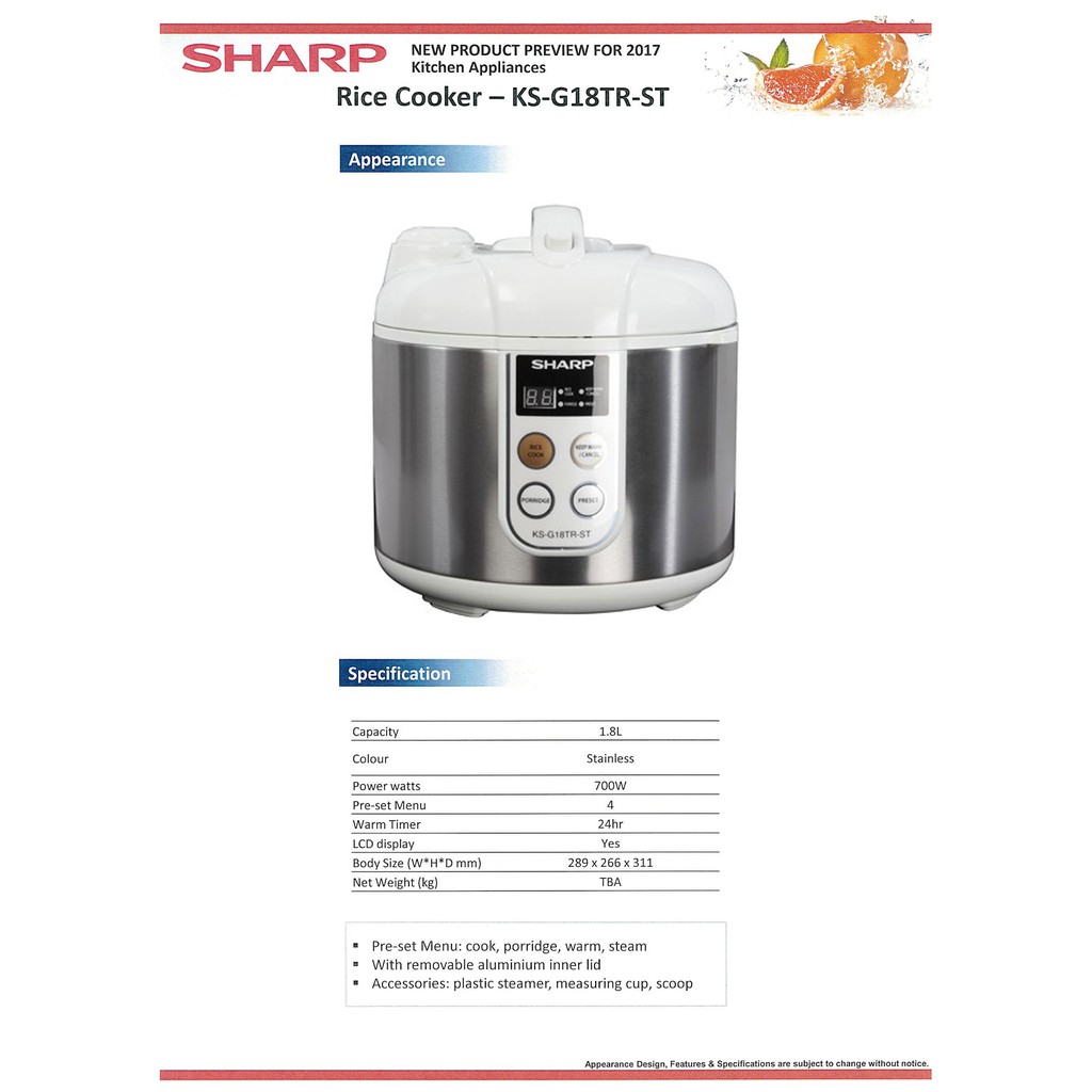 Sharp Rice Cooker Ks G18tr St 18l 700w Shopee
