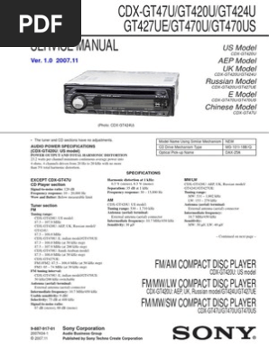 Sony Cdx Gt47u Gt420 Gt427 Gt470u Us Hertz Electrical