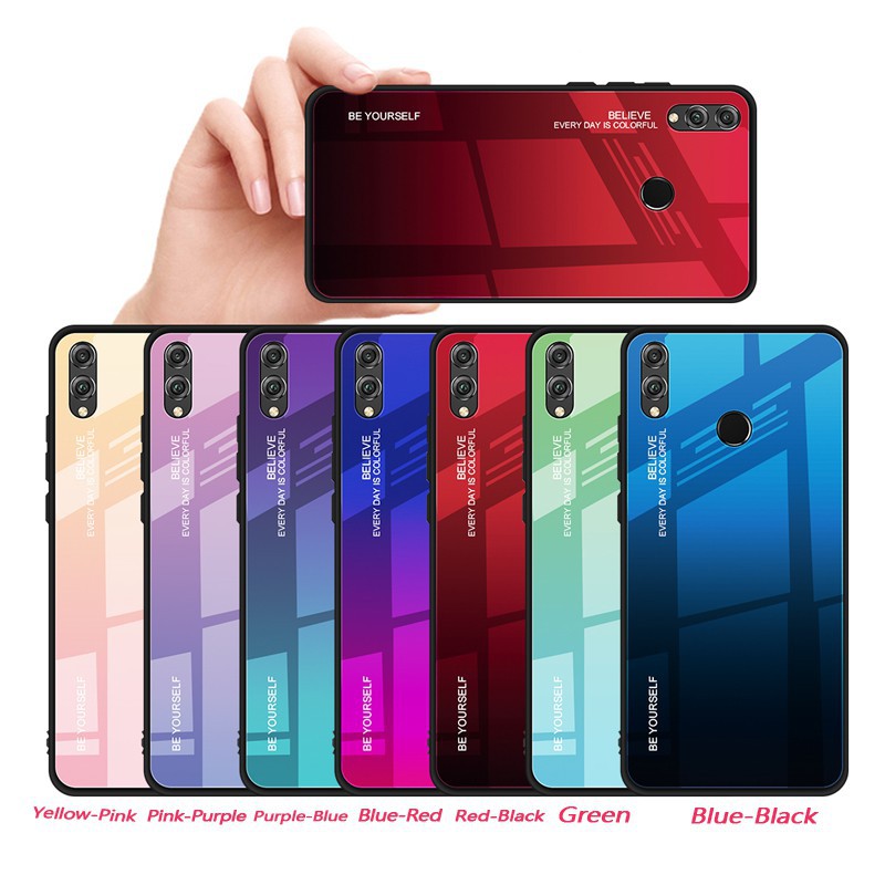Huawei Y9 Y7 Y6 Pro 2019 P30 P30lite Case Gradient Color Tempered Glass Cover Cod