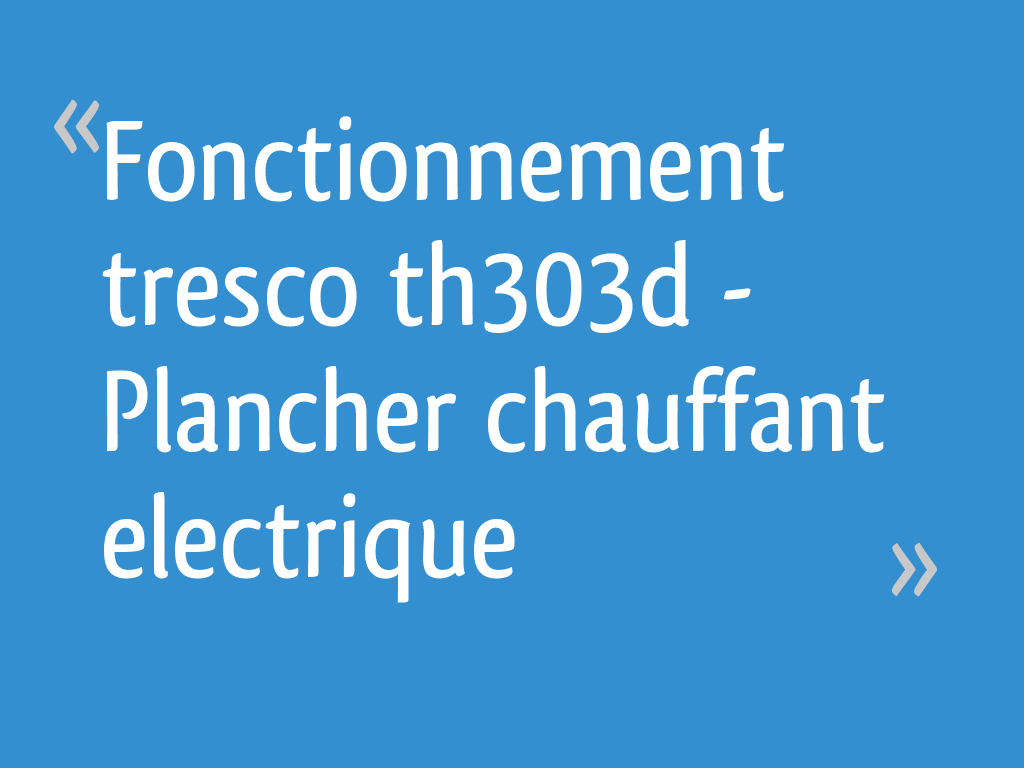 Fonctionnement Tresco Th303d Plancher Chauffant Electrique