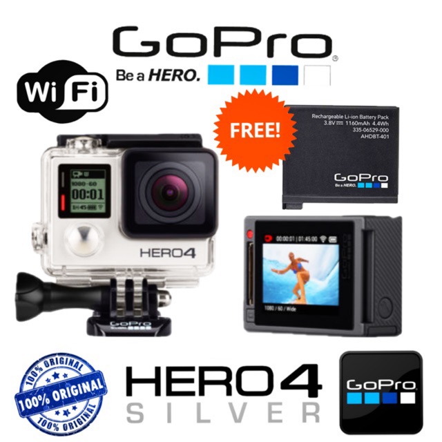 Gopro Hero 4 Silver Original 4kfull Hd Video Waterproof 40m Display Unit