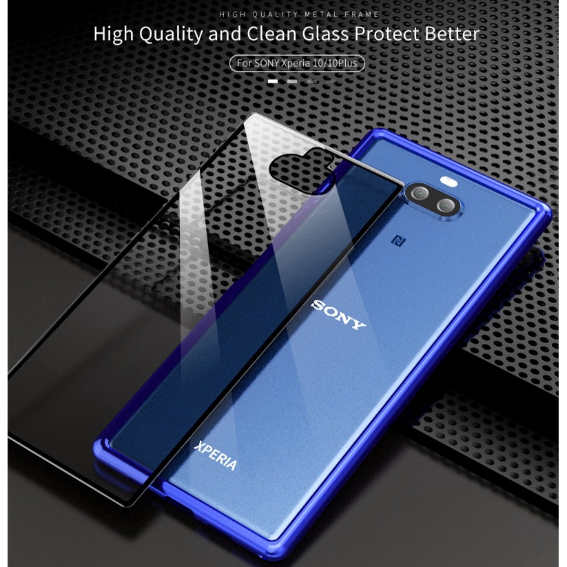Acheté Verre Trempé Par Adsorption Magnétique étui De Protection Complet En Métal Pour Sony Xperia 10 Bleu