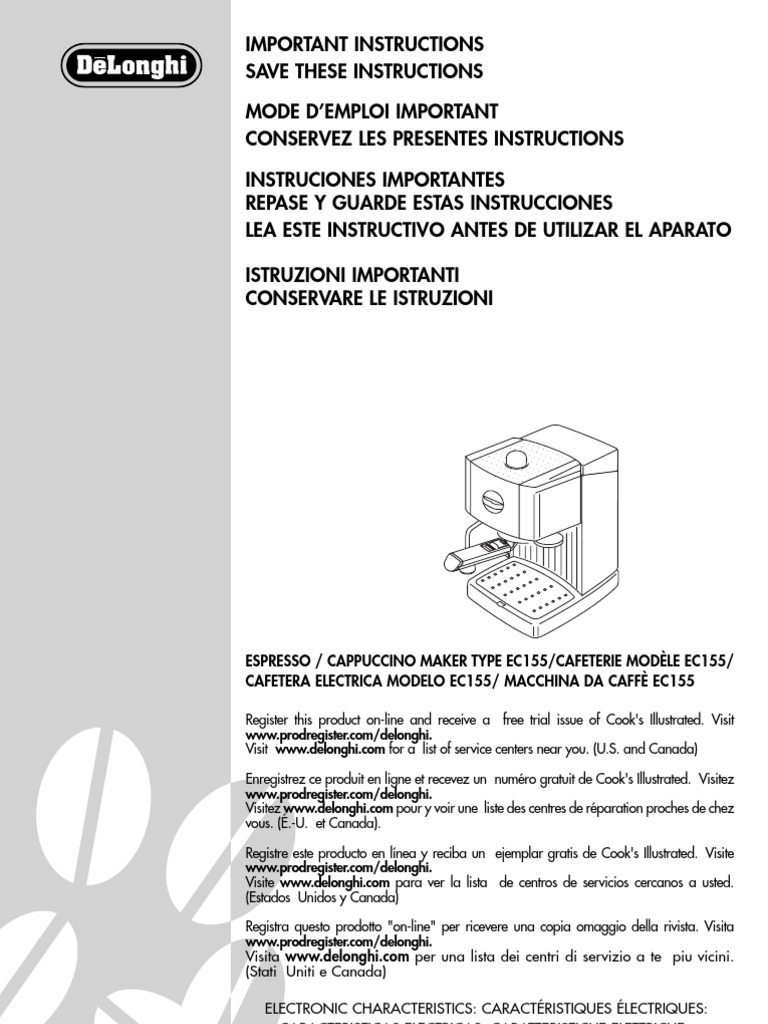 Delonghi Espresso Cappuccino Maker Instruction Manual