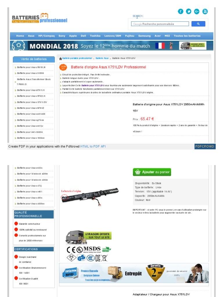 Batterie Dorigine Asus X751ldv