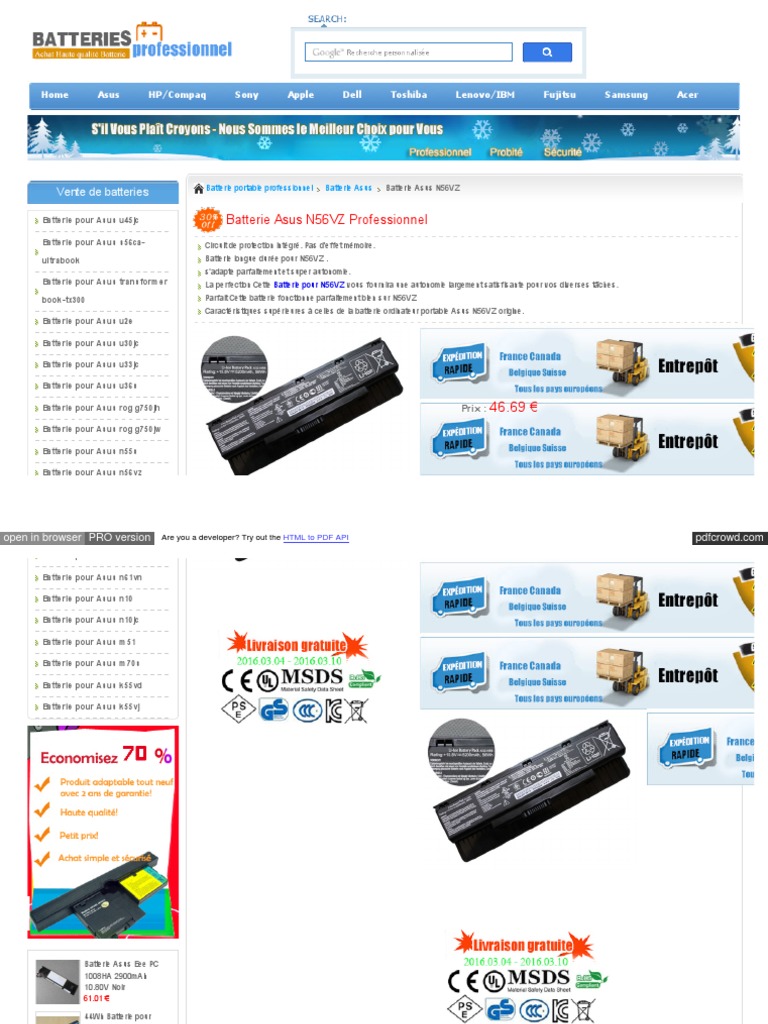 Batterie Asus N56vz Professionnel Vente De Batteries