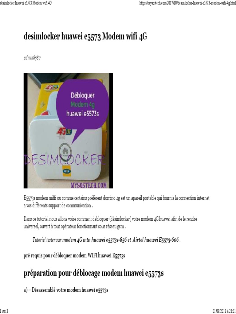 Unlocking Of Huawei E5573 4g Mobile Wifi Modem