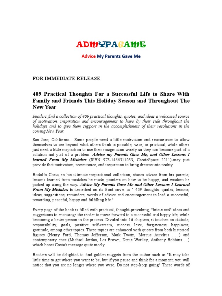 Press Release Advice My Parents Gave Me Motivation