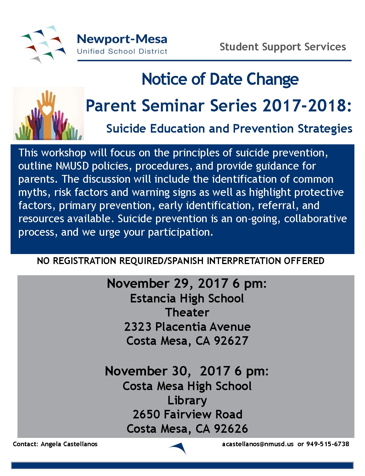 Newport Mesa Usd On Twitter Notice Of Date Change Nmusd